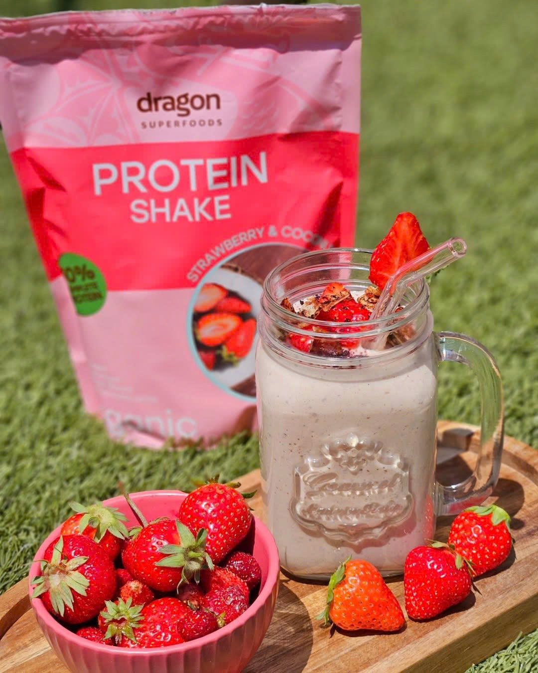 Protein hạnh nhân (32%), protein gạo (22%), protein đậu Hà Lan (22%), bột dâu tây hữu cơ (8%), bột sữa dừa hữu cơ (8%), erythritol (8%) – từ nông nghiệp hữu cơ.