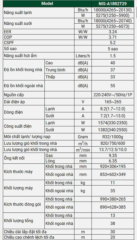 Điều hoà 2 chiều Nagakawa NIS-A18R2T29 hội tụ đầy đủ các yếu tố: tiết kiệm điện – vận hành êm ái – thiết kế đẹp – công nghệ thông minh – thân thiện môi trường. Đây là lựa chọn lý tưởng cho những ai đang tìm kiếm một chiếc điều hòa vừa có khả năng làm lạnh, sưởi ấm quanh năm, vừa đáp ứng nhu cầu sống xanh, tiết kiệm và hiện đại.