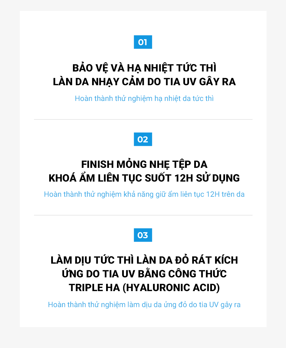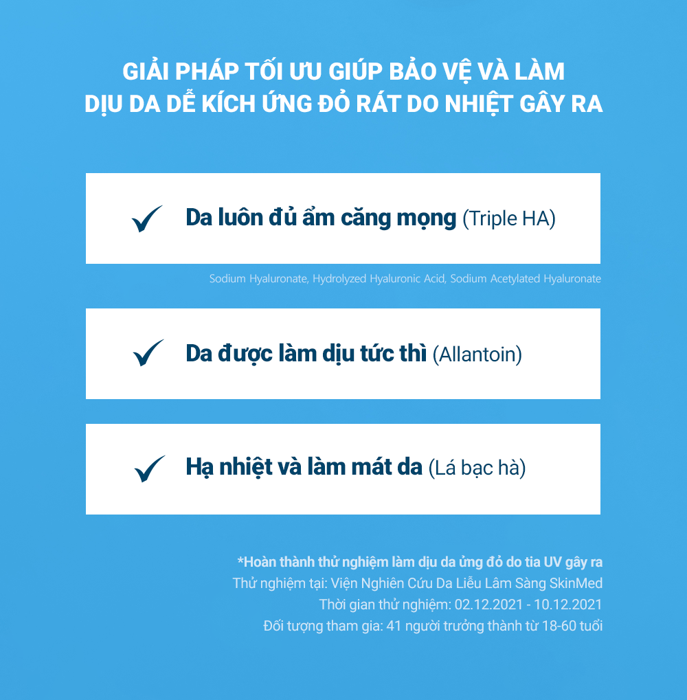 - Triple Hyaluronic Acid: Cấp ẩm sâu hơn vào trong các tế bào da ở dưới biểu bì, giữ cho da luôn ngậm nước và căng mướt.
