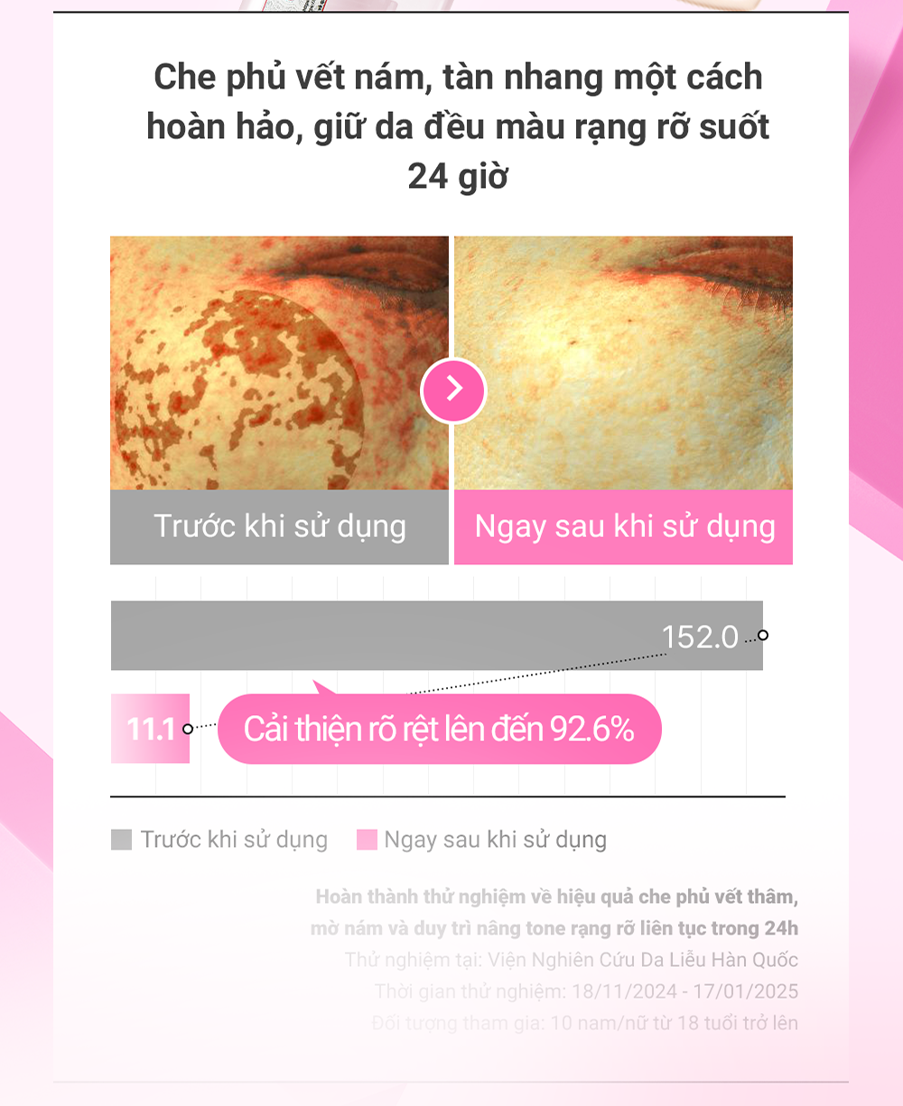 - Hỗ trợ nâng tone và che khuyết điểm, thay lớp kem nền trang điểm.