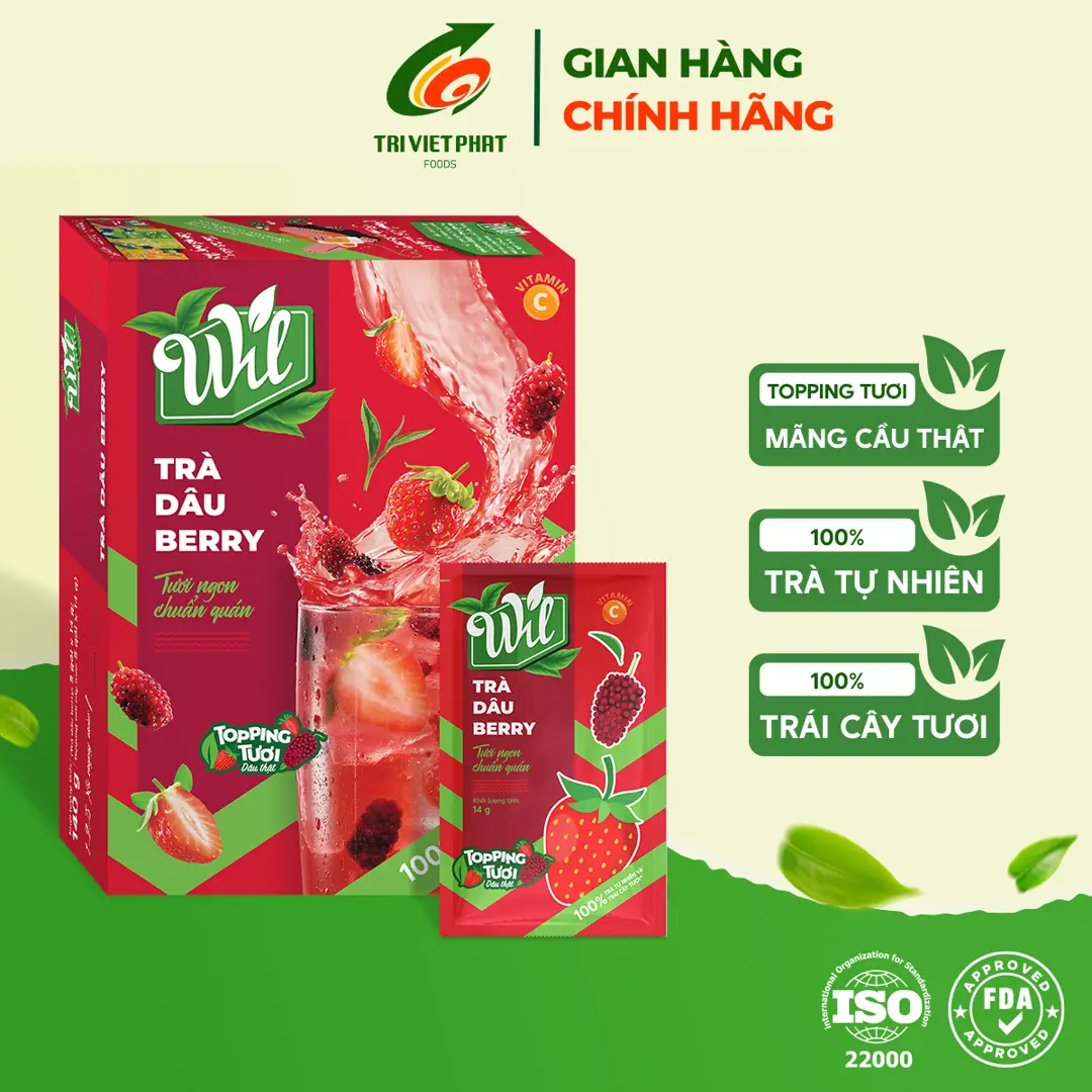 140 g (Trà dâu berry: 5 gói × 14 g; Topping trái cây tươi: 5 gói × 14 g)