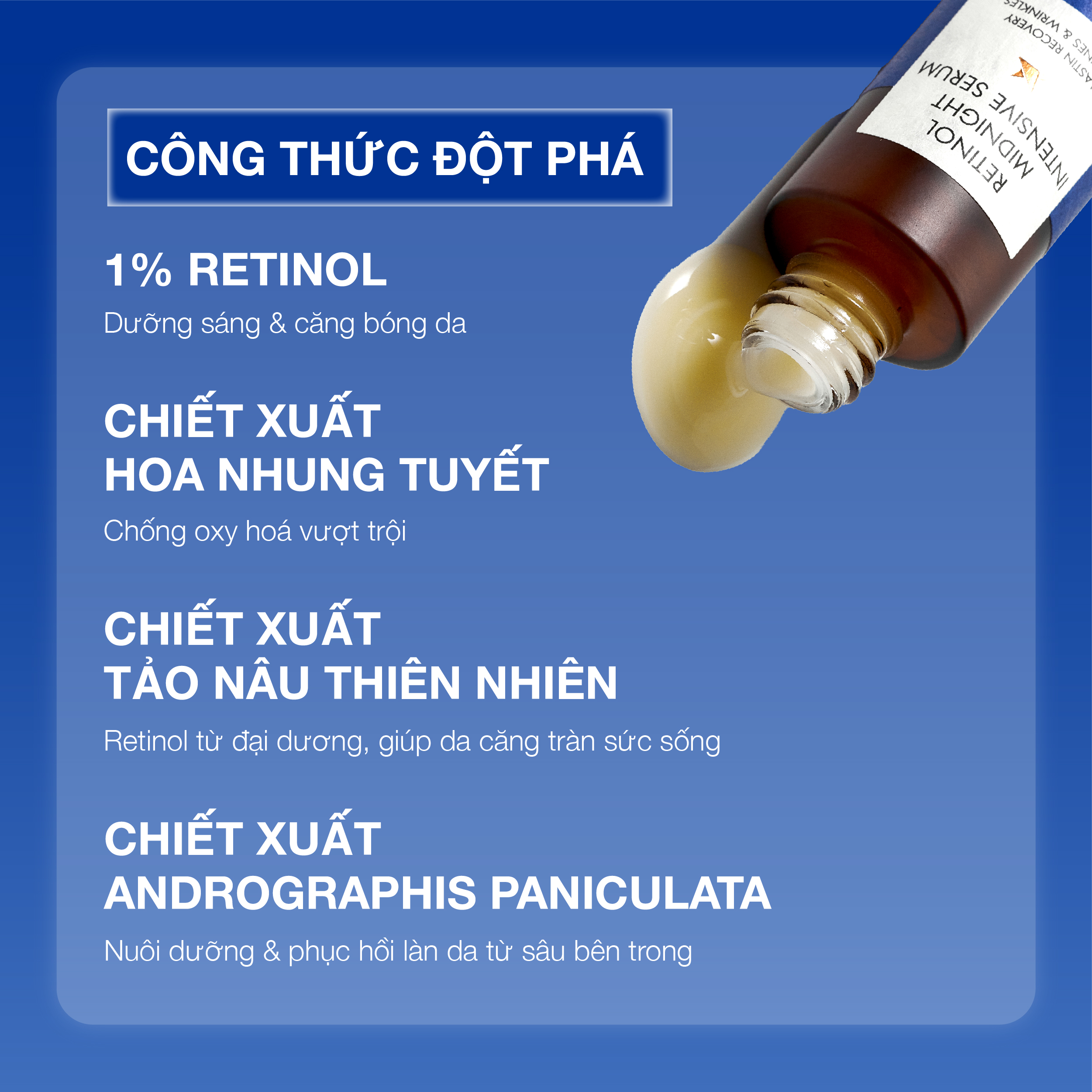 Tinh chất retinol cải thiện nếp nhăn, tăng độ đàn hồi và dưỡng trắng sáng bật tone.