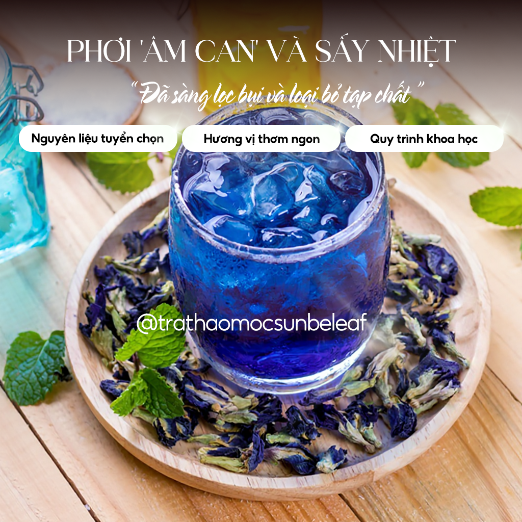 🍃Thành phần: Trà Hoa Đậu Biếc có thành phần từ 100% Hoa Đậu Biếc, không sử dụng đường hóa học và cam thảo. Công nghệ phơi 'Âm Can' và 'Sấy Nhiệt có kiểm soát nhiệt độ' giúp lưu giữ trọn hương vị và giá trị thảo dược.